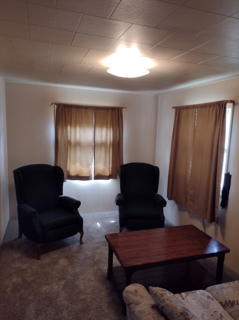 The Geraldine House is a 2BR/1BA small single-story house that was built in the 1970s. New metal roof, and metal siding. The bathroom had a full remodel in 2023, as well as a partial kitchen remodel with new appliances and linoleum floor. The living room and each of the two bedrooms had new carpet installed in 2023.
